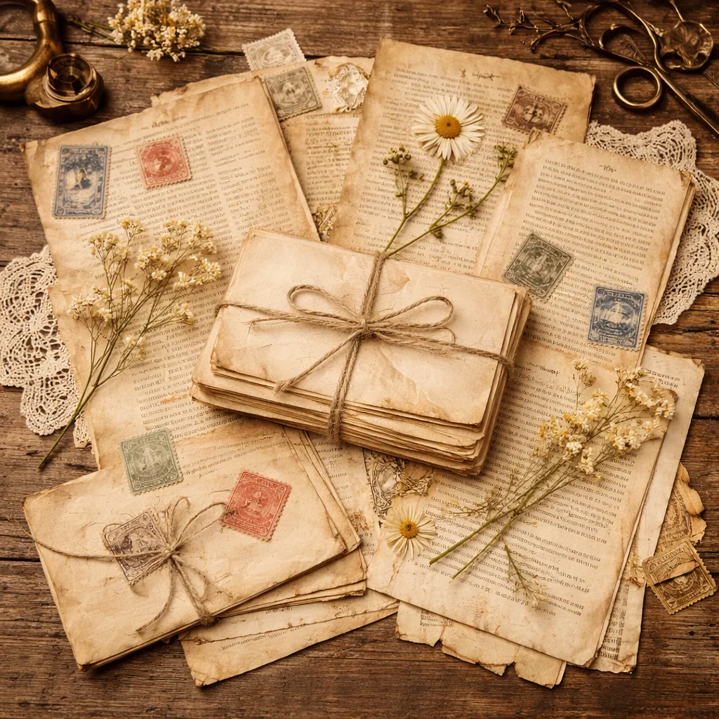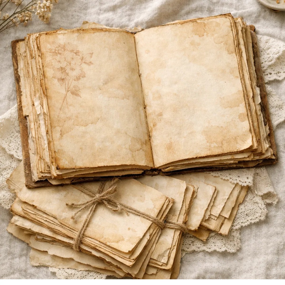 Where to source free vintage papers, old book pages, postage stamps, and tea-stained elements that give your journal that timeless, sacred feel.